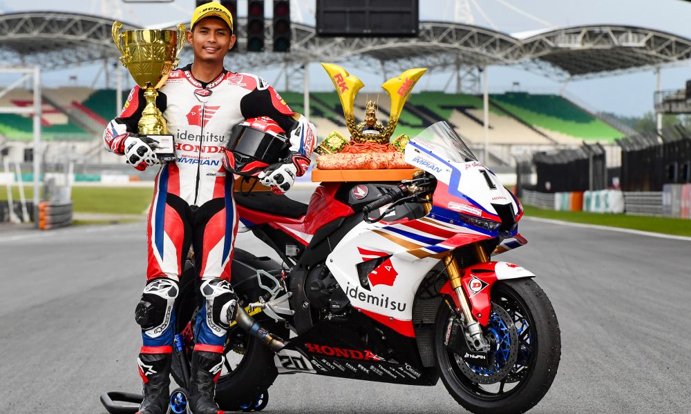 Honda Racing Malaysia’s Azroy Hakeem storms to victory in Race 2 of the MSBK1000 class at Sepang,...