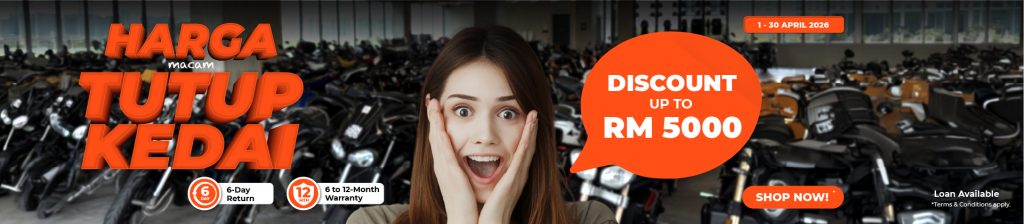 Tawaran motosikal untuk setiap gaya hidup dengan fokus kepada kapcai, lengkap dengan jaminan sehingga 12 bulan dan kemudahan pembiayaan.